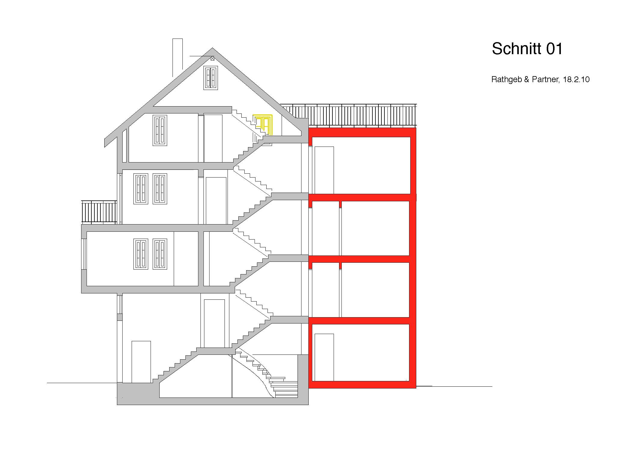 Das Haus Nr. 18 konnte jedoch nicht mehr gerettet werden. Ein Ersatzbau mit zwei Kleinwohnungen und einer Maisonettewohnung zuoberst ersetzt den Altbau. Da in der sehr schmalen und langen Liegenschaft kein Treppenhaus mehr Platz gehabt hätte, wurde die Erschliessung der Wohnungen durch direkte Zugänge von den Zwischenpodesten des Nachbargebäudes ermöglicht. Das Haus Nr. 18 wurde zur Erweiterung des Hauses Nr. 10.
