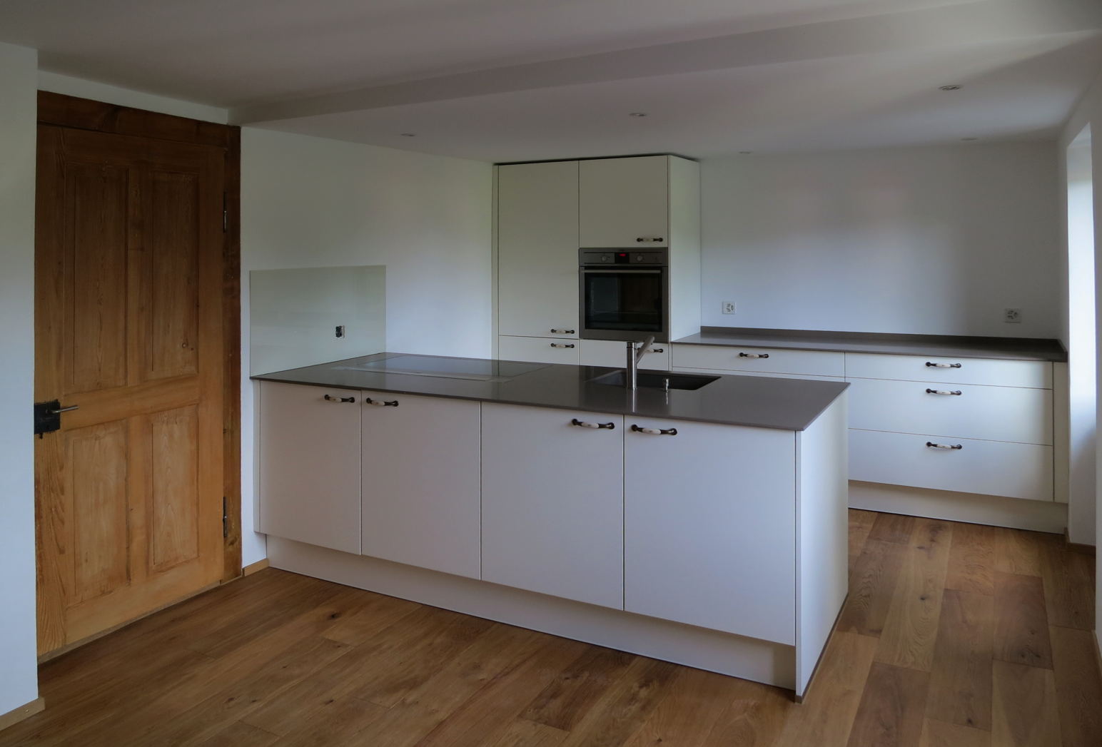 Vom alten Bauernhaus in Rümikon am Rhein wurde Vieles original erhalten, Anderes nostalgisch nach den Wünschen der Bauherrin gestaltet. Dazu gehören auch die Griffe der Küchenkombination. Ein spannender Mix aus alt und modern ist entstanden.