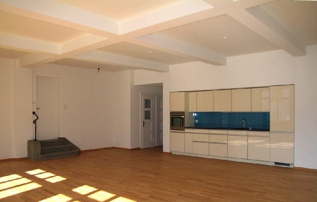 Bei der Renovation wurde die ehemalige Quartierbeiz in ein modernes Loft mit zwei Zimmern verwandelt und die übrigen Wohnungen sanft renoviert.