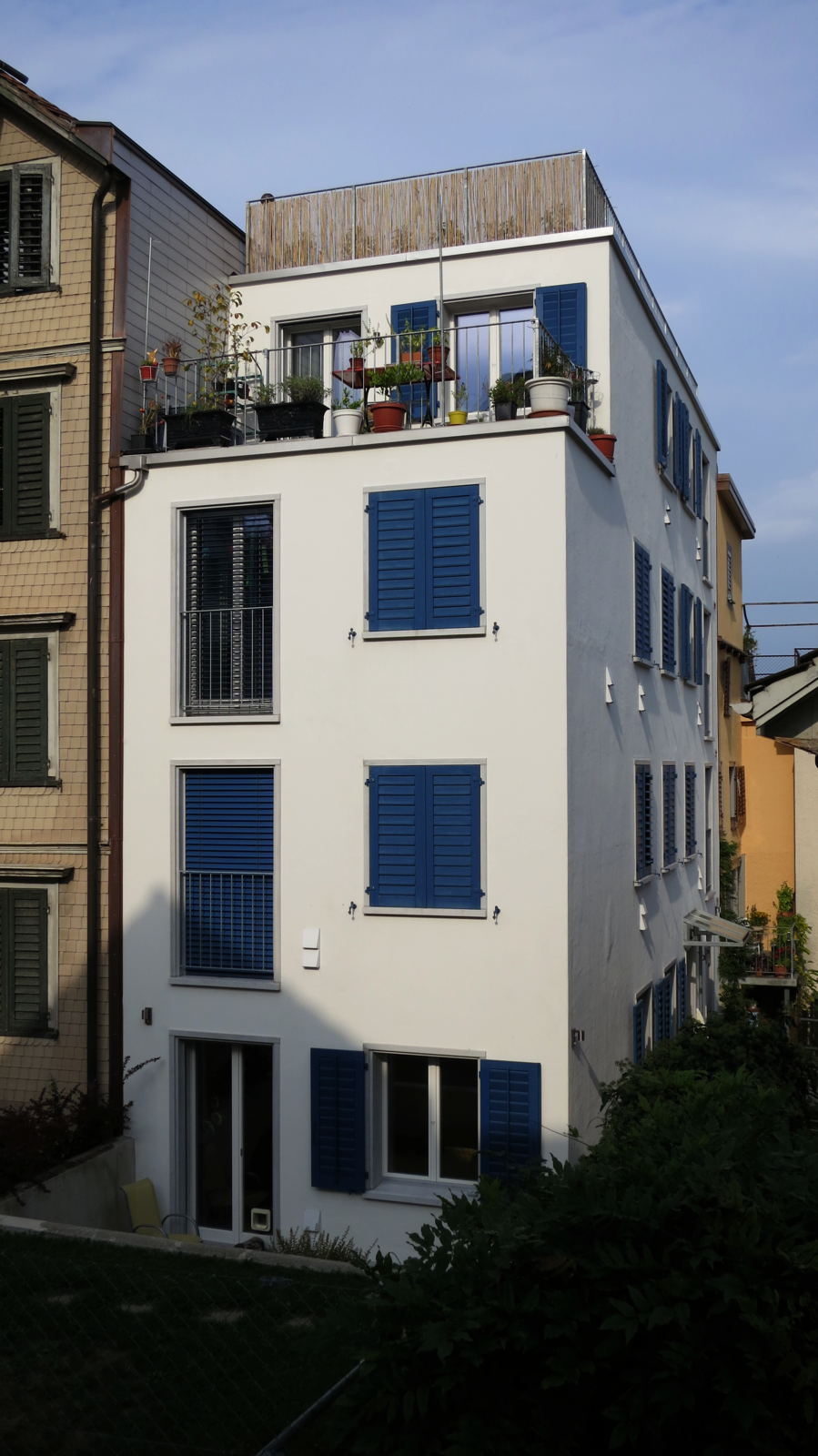 Das Haus Nr. 18 konnte jedoch nicht mehr gerettet werden. Ein Ersatzbau mit zwei Kleinwohnungen und einer Maisonettewohnung zuoberst ersetzt den Altbau. Da in der sehr schmalen und langen Liegenschaft kein Treppenhaus mehr Platz gehabt hätte, wurde die Erschliessung der Wohnungen durch direkte Zugänge von den Zwischenpodesten des Nachbargebäudes ermöglicht. Das Haus Nr. 18 wurde zur Erweiterung des Hauses Nr. 10.